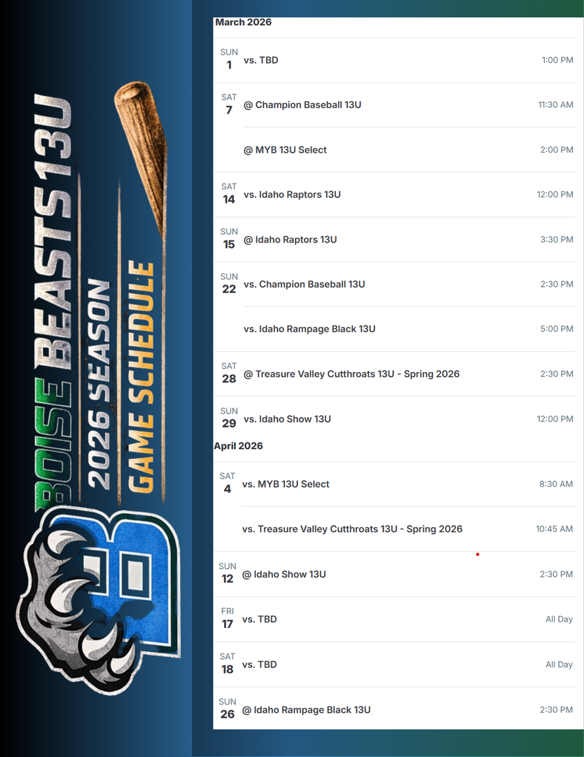 Boise Beast Schedules